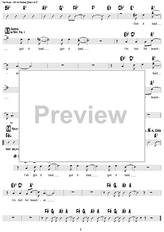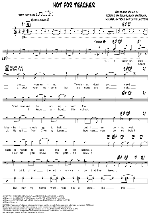 Digital Sheet Music for Hot for Teacher by Eddie Van Halen, David Lee Roth, Michael Anthony, Alex Van Halen, Van Halen scored for Lead Sheet; id:307933