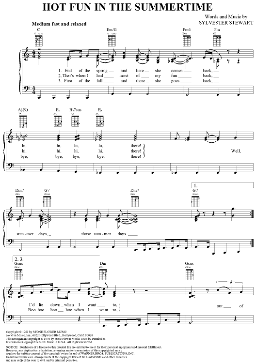 Digital Sheet Music for Hot Fun in the Summertime by Sly and the Family Stone, Sly Stone scored for Piano/Vocal/Chords; id:321588