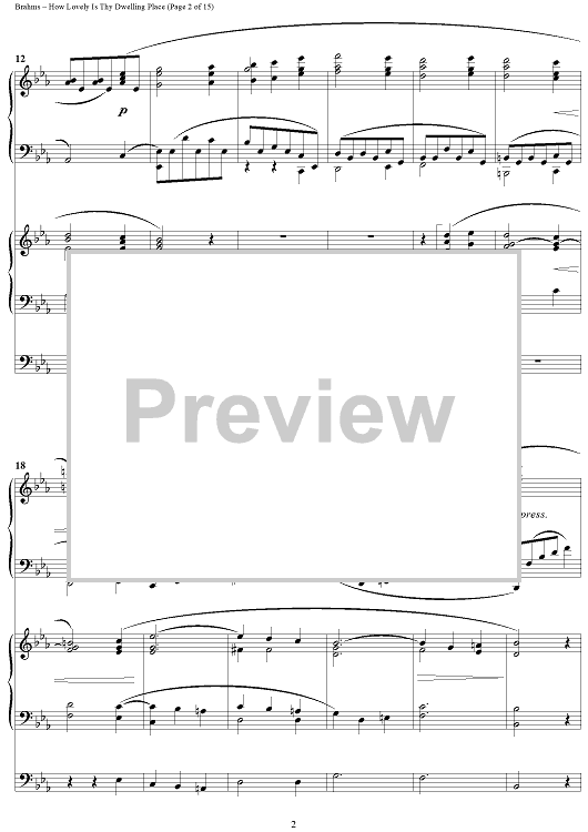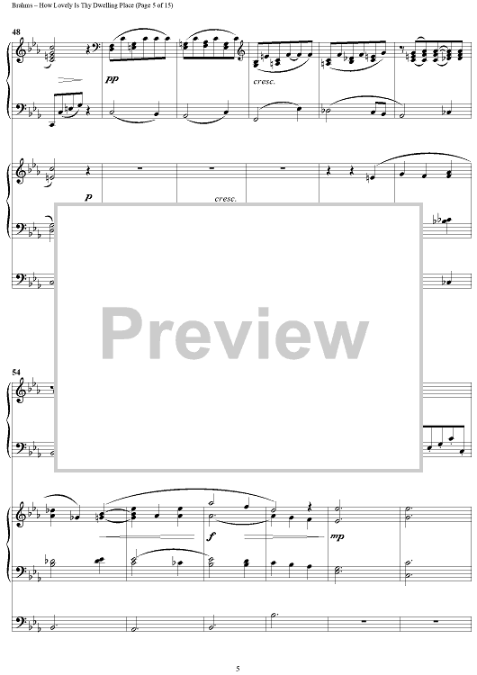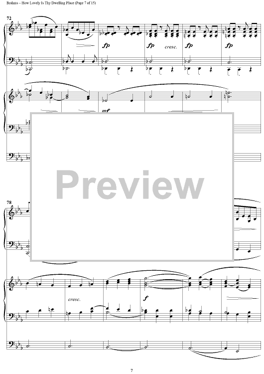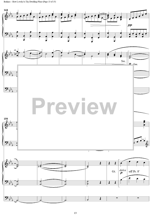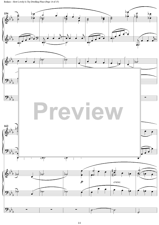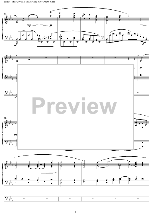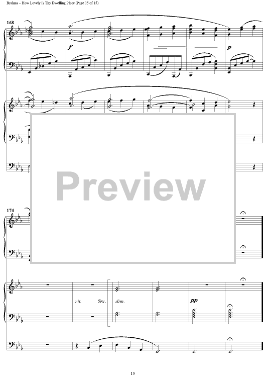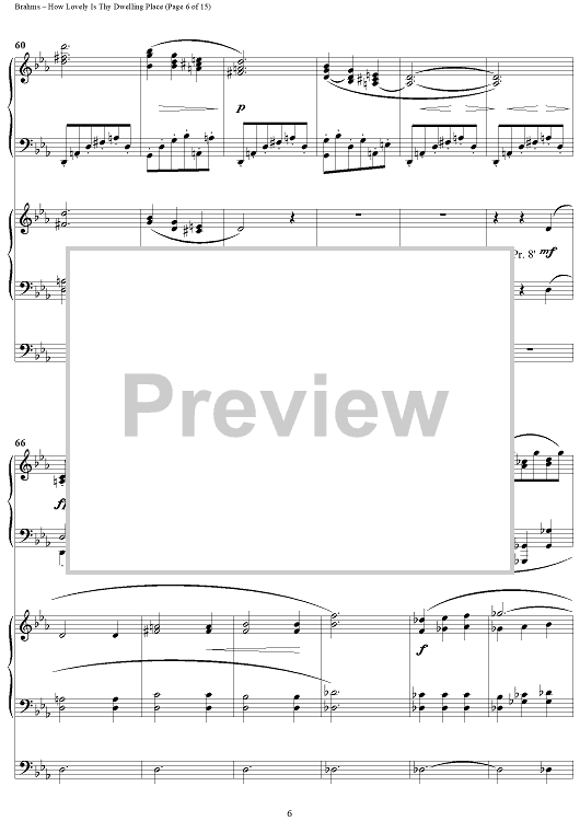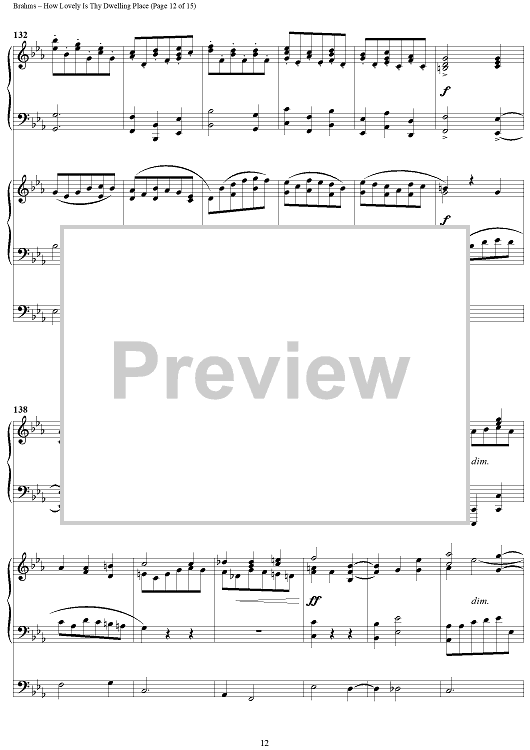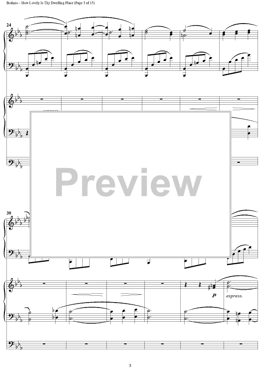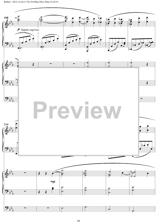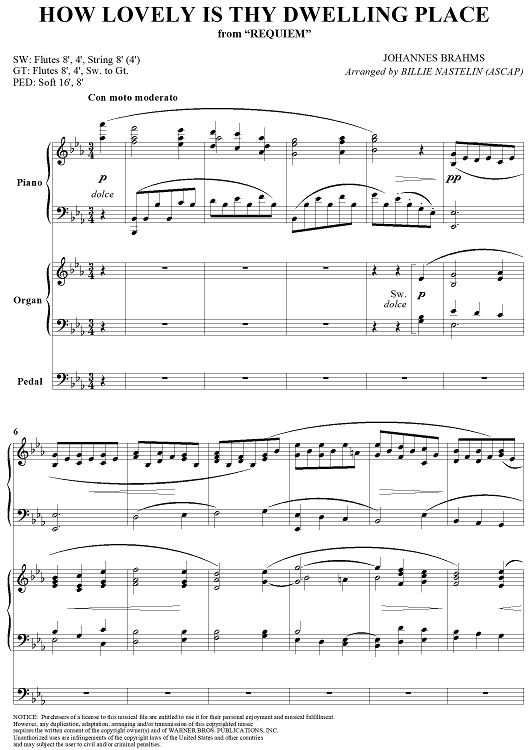 Digital Sheet Music for How Lovely Is Thy Dwelling Place by Johannes Brahms, Billie Nastelin scored for Organ/Piano; id:286971