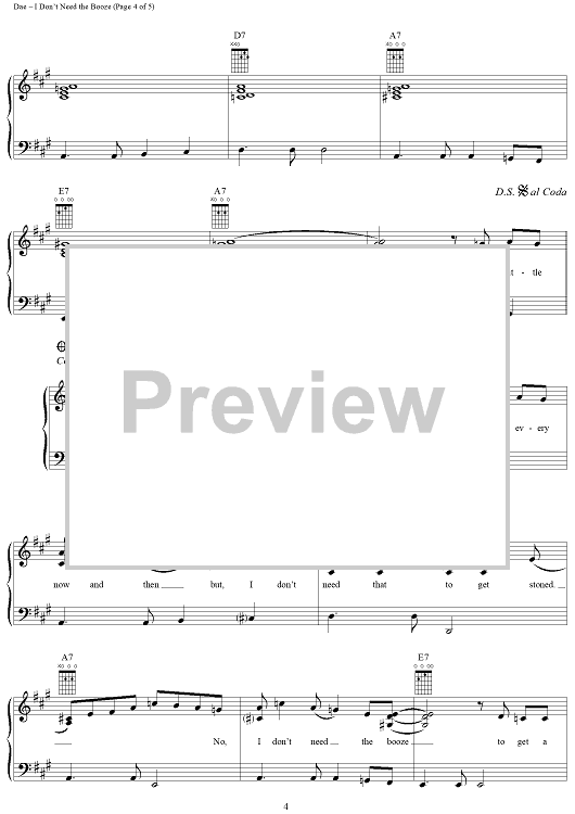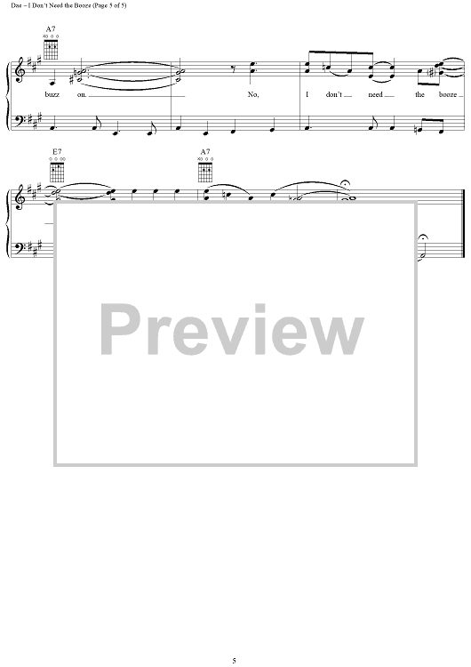 "I Don't Need the Booze (To Get a Buzz On)" Sheet Music by Al Jackson Jr