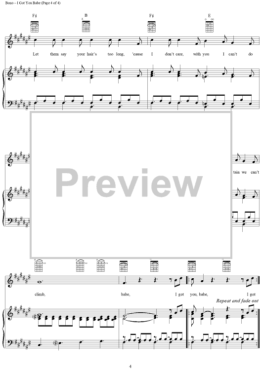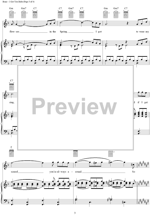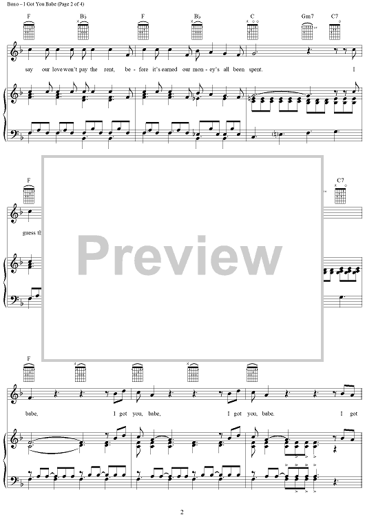 Digital Sheet Music for I Got You Babe by Sonny Bono, Sonny & Cher scored for Piano/Vocal/Chords; id:116115