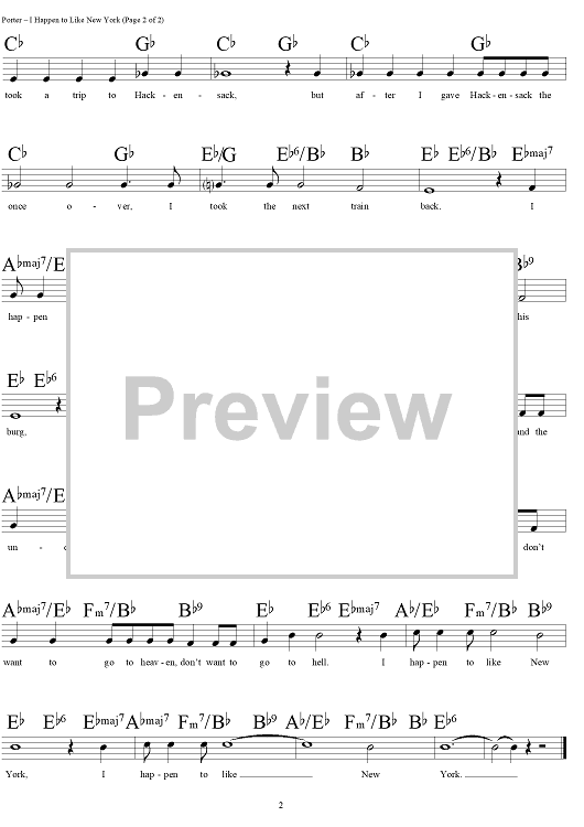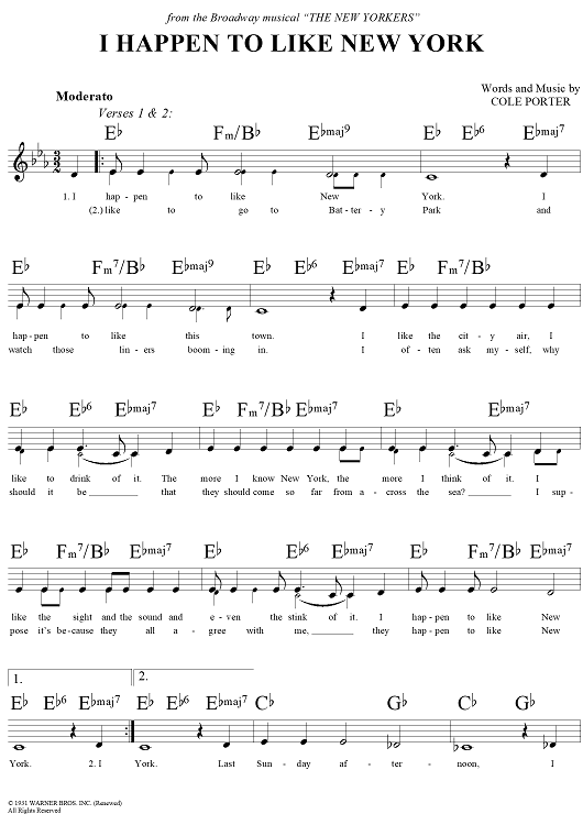Digital Sheet Music for I Happen to Like New York by Cole Porter scored for Lead Sheet; id:254950