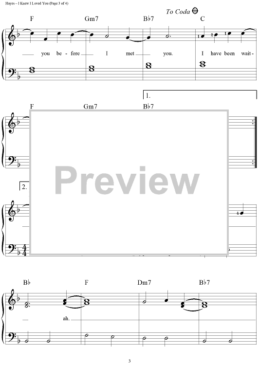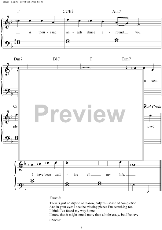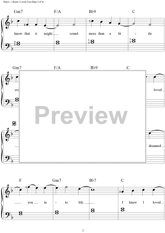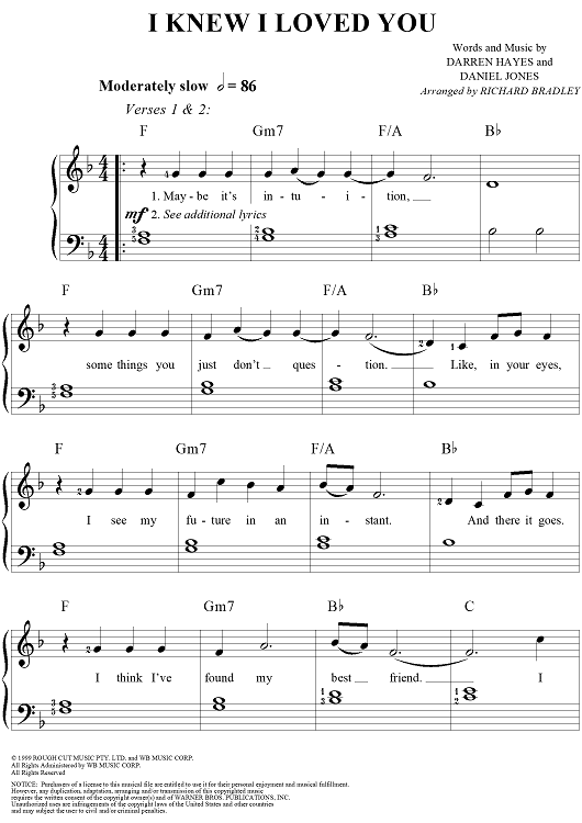 Digital Sheet Music for I Knew I Loved You by Richard Bradley, Darren Hayes, Daniel Jones, Savage Garden scored for Big Note Piano; id:234897