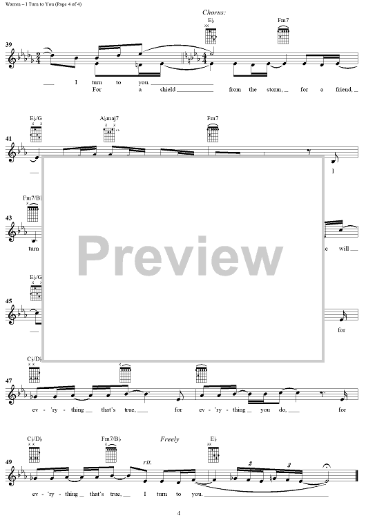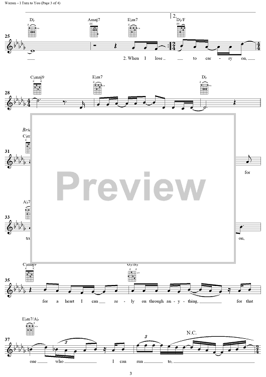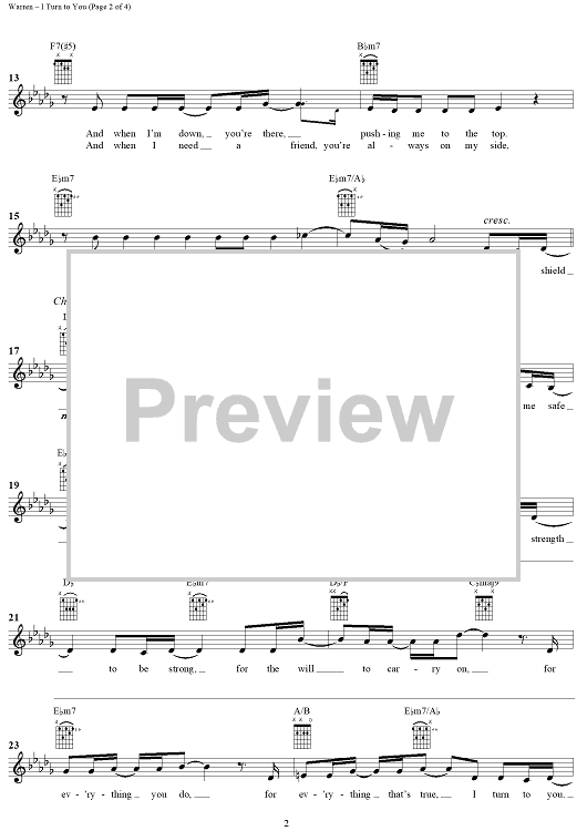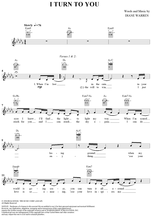 Digital Sheet Music for I Turn to You by Diane Warren, Christina Aguilera scored for Easy Guitar/Vocal; id:285748
