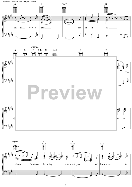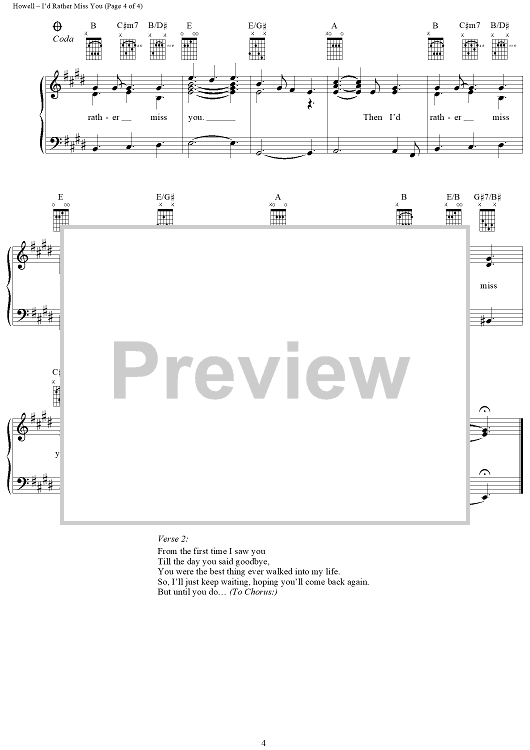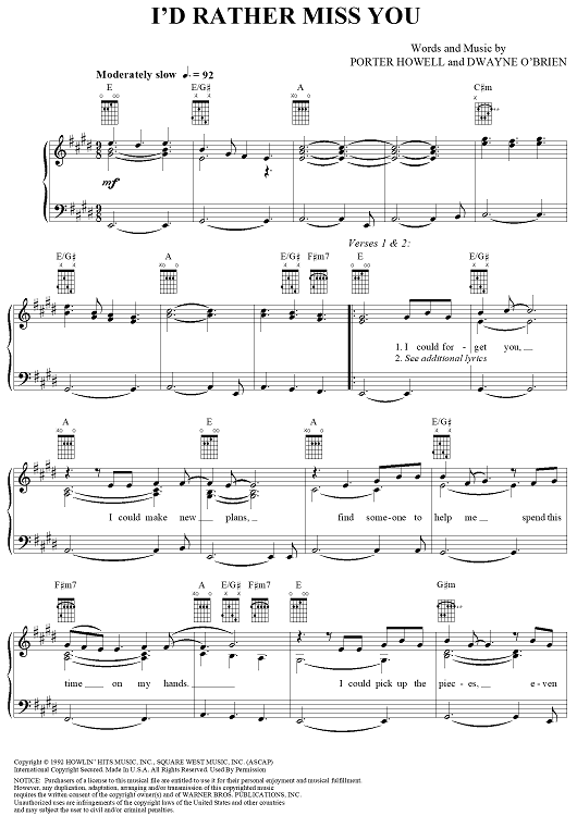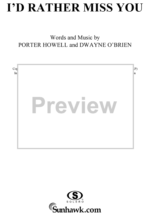 Digital Sheet Music for I'd Rather Miss You by Porter Howell, Dwayne O'Brien scored for Piano/Vocal/Chords; id:266374