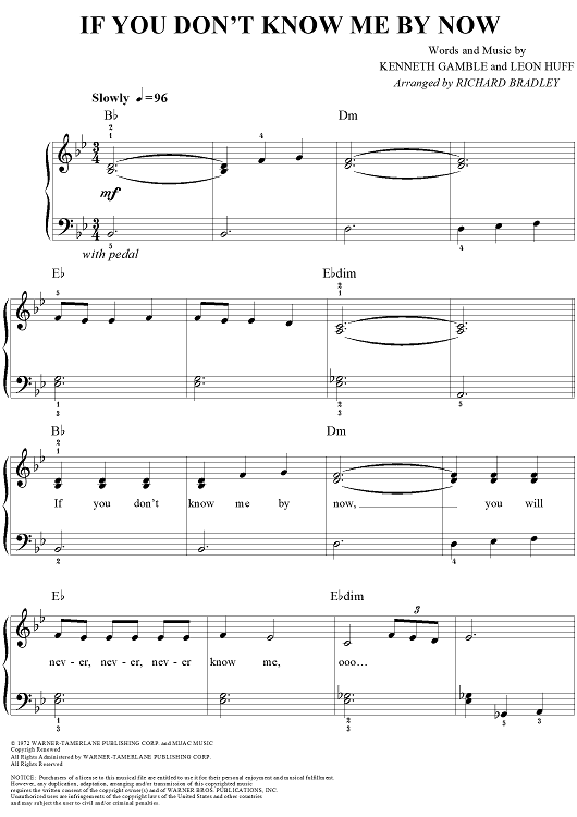 Digital Sheet Music for If You Don't Know Me By Now by Richard Bradley, Leon Huff, Simply Red, Kenneth Gamble scored for Easy Piano; id:283813