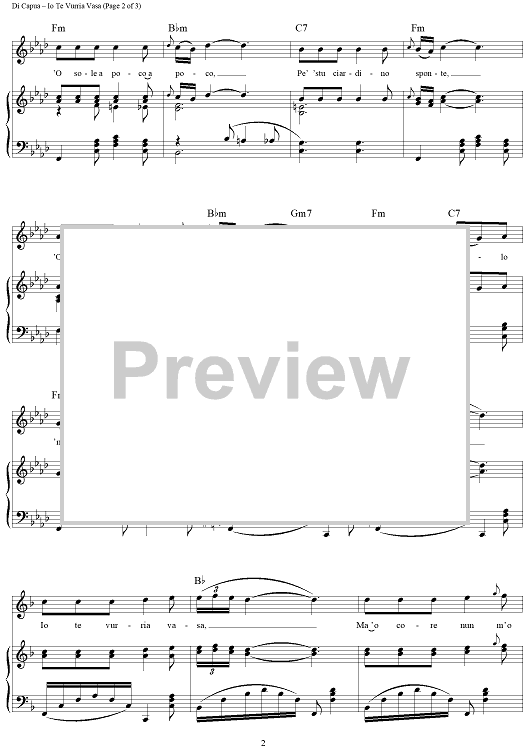 Digital Sheet Music for Io Te Vurria Vasa by Eduardo di Capua, Vincenzo Russo scored for Piano/Vocal/Chords; id:289415