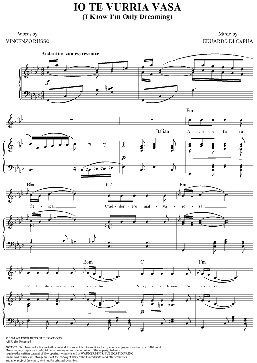 "Io Te Vurria Vasa" Sheet Music by Eduardo Di Capua