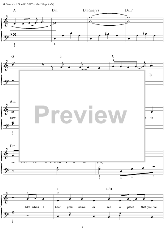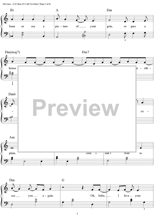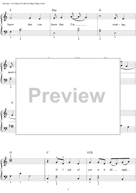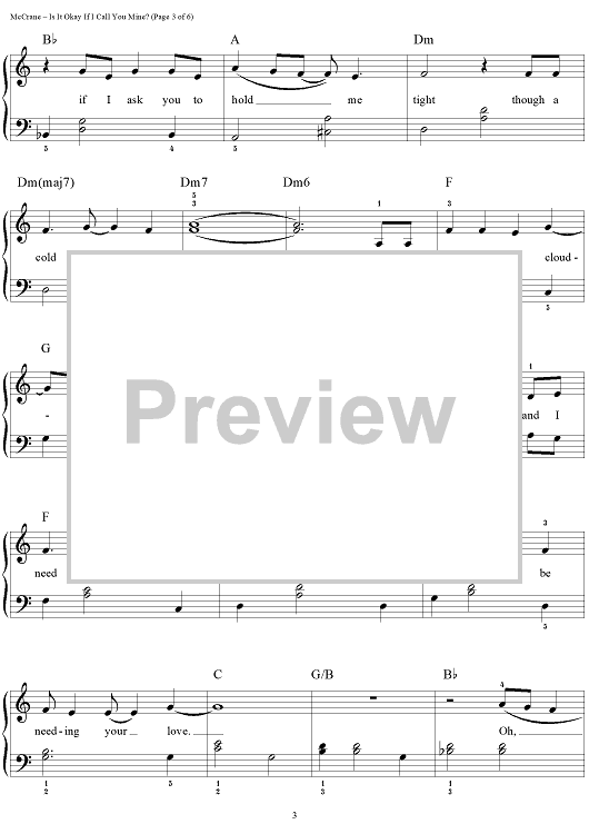 Digital Sheet Music for Is it Okay if I Call You Mine? by John Lane, Paul McCrane scored for Easy Piano/Vocal; id:251599
