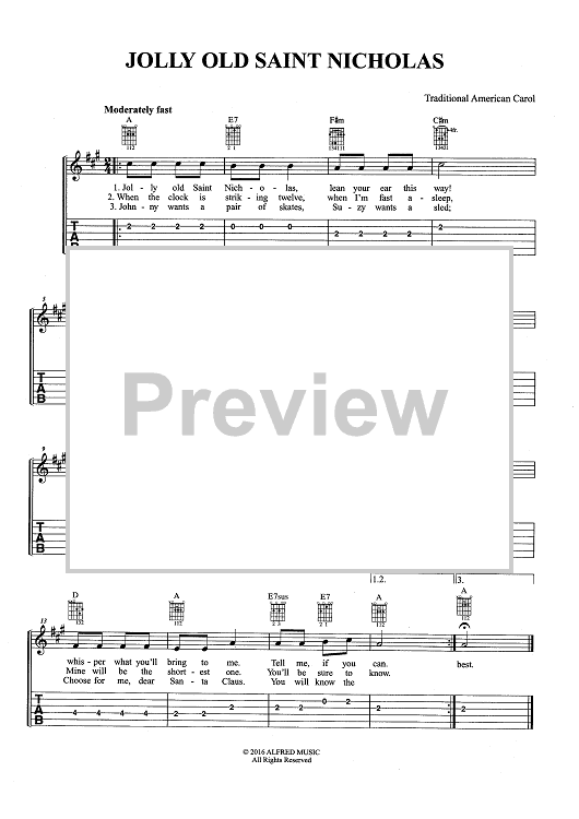 Digital Sheet Music for Jolly Old Saint Nicholas by Traditional American Carol scored for Easy Guitar Tab/Vocal/Chords; id:463648
