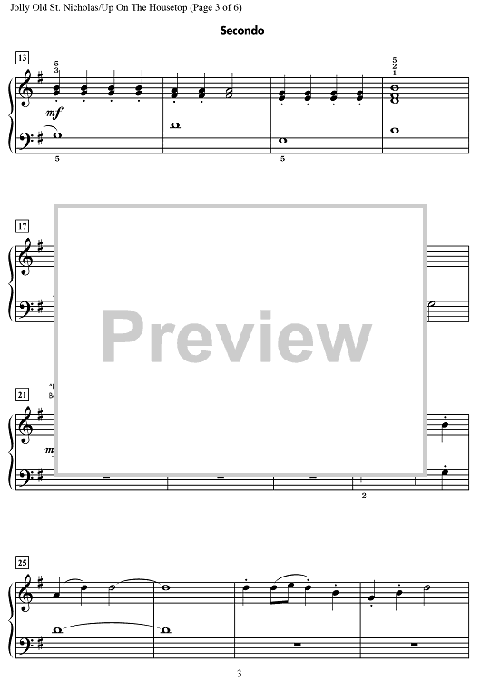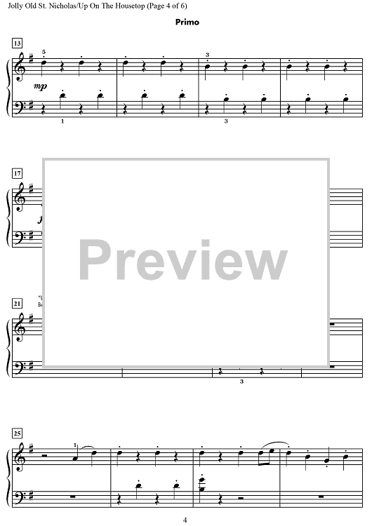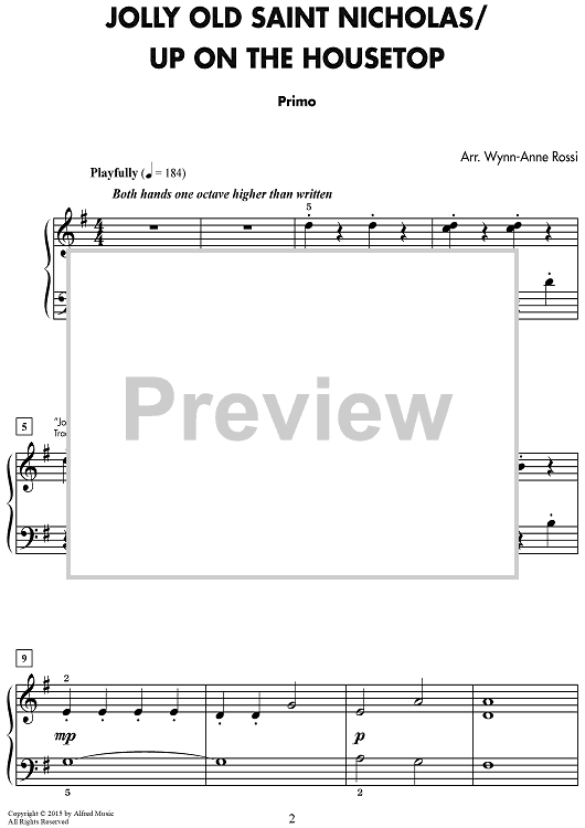 Digital Sheet Music for Jolly Old Saint Nicholas / Up on the Housetop by Wynn-Anne Rossi scored for 1 Piano, 4 Hands; id:469695