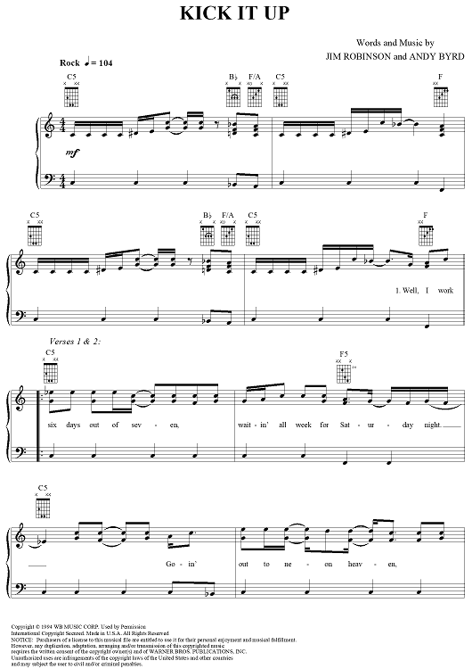 Digital Sheet Music for Kick It Up by John Michael Montgomery, Andy Byrd, Jim Robinson scored for Piano/Vocal/Chords; id:254918