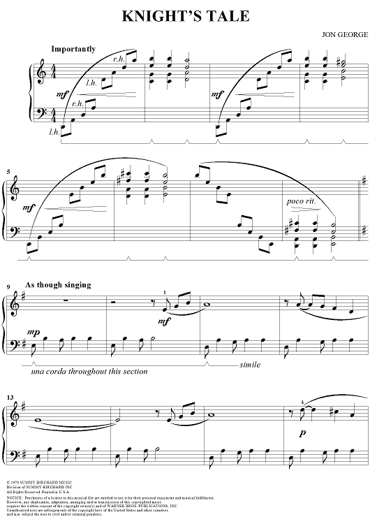 Digital Sheet Music for Knight's Tale by Jon George scored for Easy Piano; id:287400