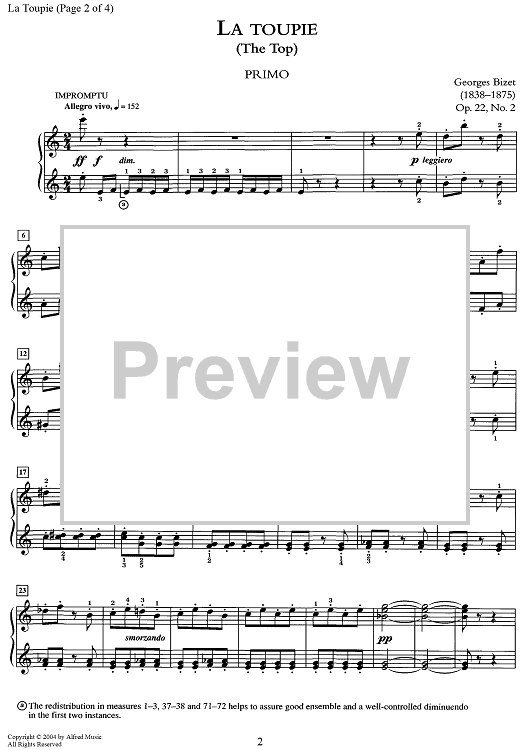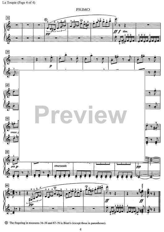 Digital Sheet Music for La Toupie (The Top) by Georges Bizet scored for 1 Piano, 4 Hands; id:468614