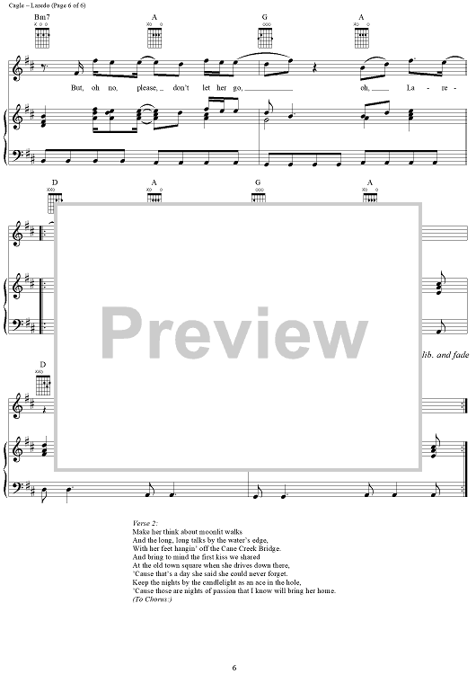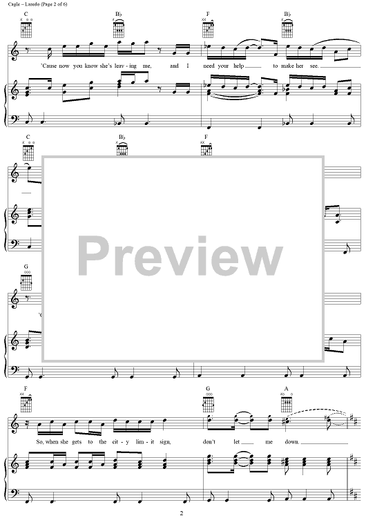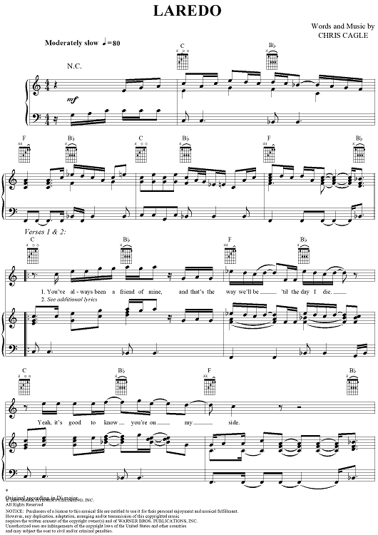 Digital Sheet Music for Laredo by Chris Cagle scored for Piano/Vocal/Chords; id:284478