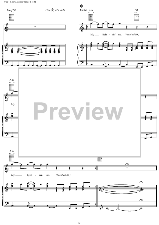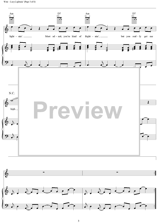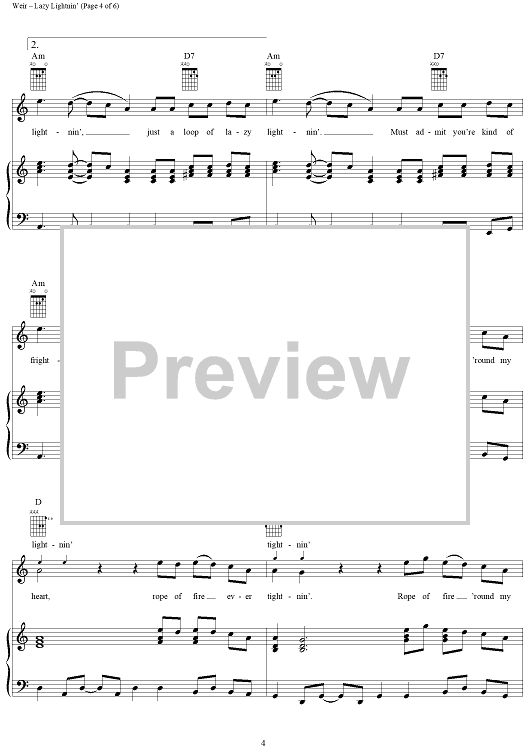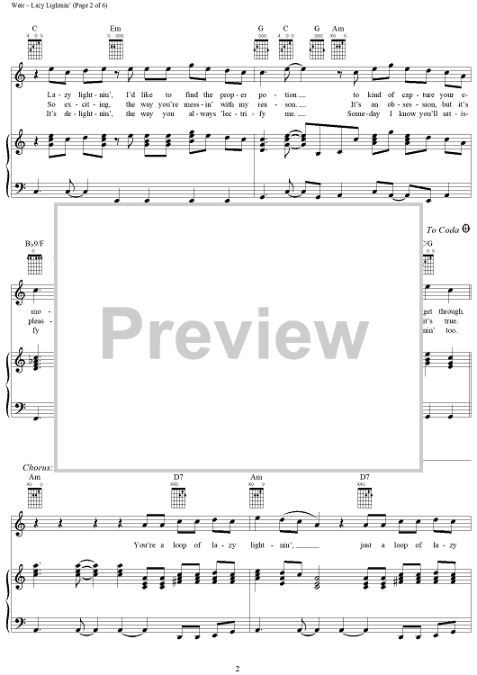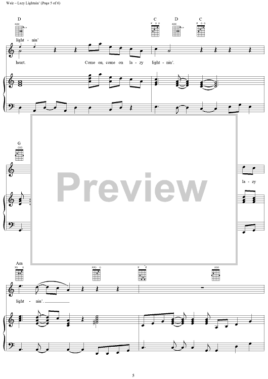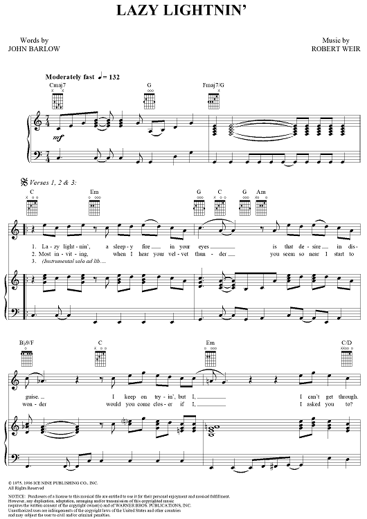 Digital Sheet Music for Lazy Lightnin' by Bob Weir, John Perry Barlow, Grateful Dead scored for Piano/Vocal/Chords; id:264467