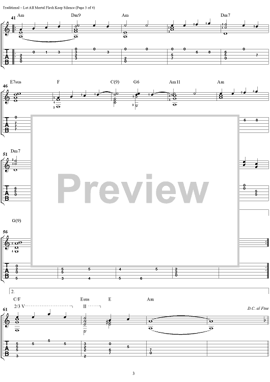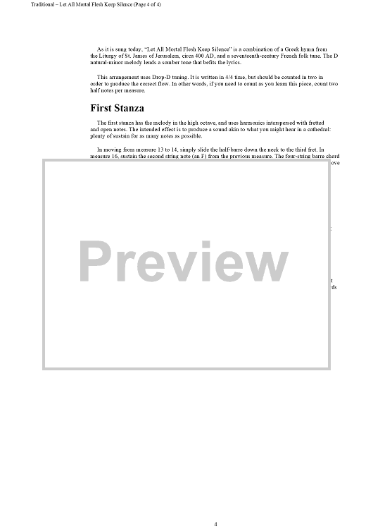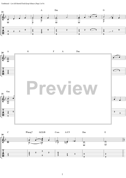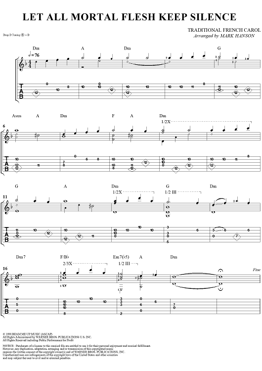 Digital Sheet Music for Let All Mortal Flesh Keep Silence by Mark Hanson, Traditional scored for Guitar Tab; id:260501