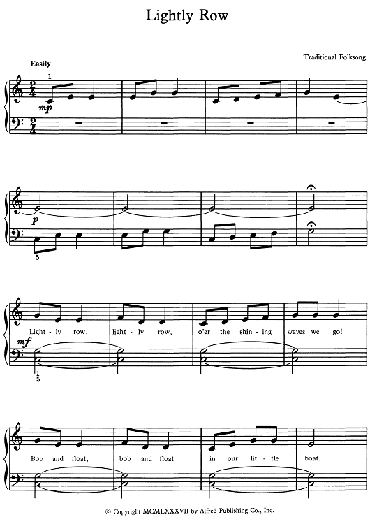 Digital Sheet Music for Lightly Row by Lynn Freeman Olson, Traditional Folk Song scored for Five Finger Piano; id:510998