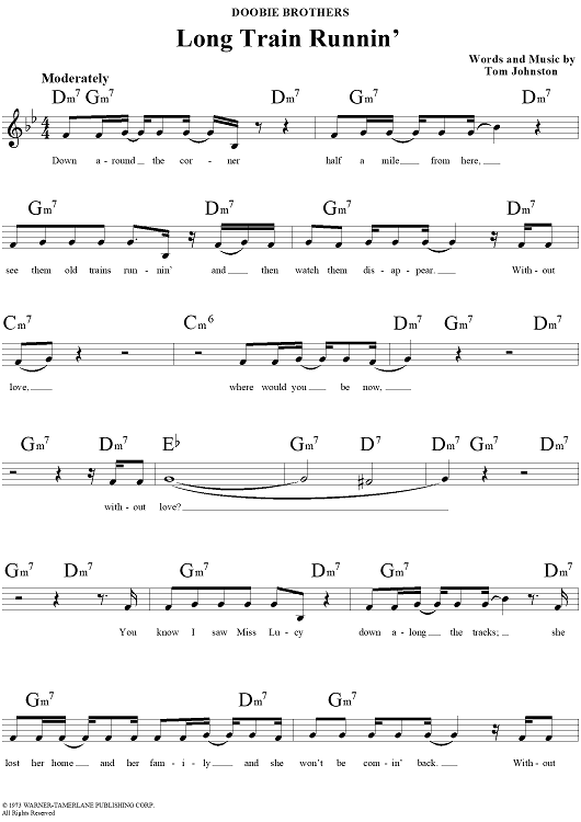 Digital Sheet Music for Long Train Runnin' by Tom Johnston, The Doobie Brothers scored for Lead Sheet; id:111988