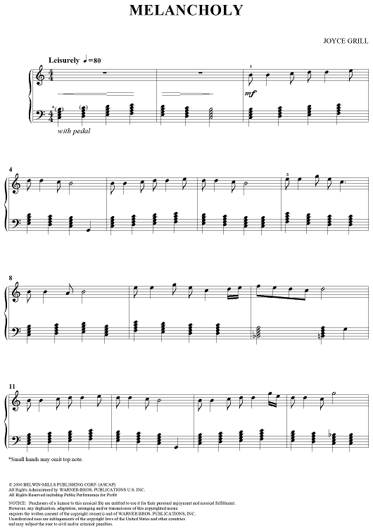 "Melancholy" Sheet Music by Joyce Grill