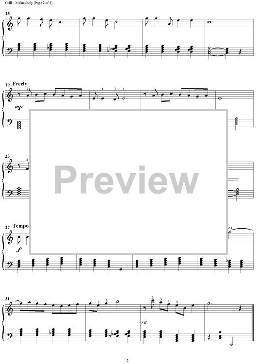Digital Sheet Music for Melancholy by Joyce Grill scored for Piano Solo; id:317953
