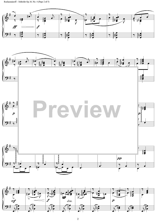 Digital Sheet Music for Melodie, Op. 10, No. 4 by Sergei Rachmaninoff scored for Piano Solo; id:255454