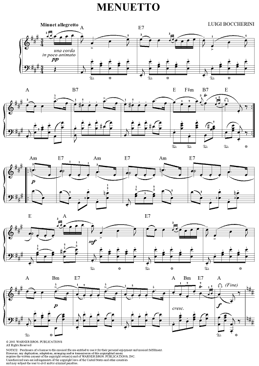 "Menuetto" Sheet Music by Luigi Boccherini