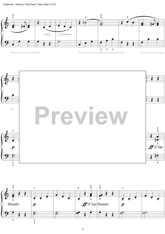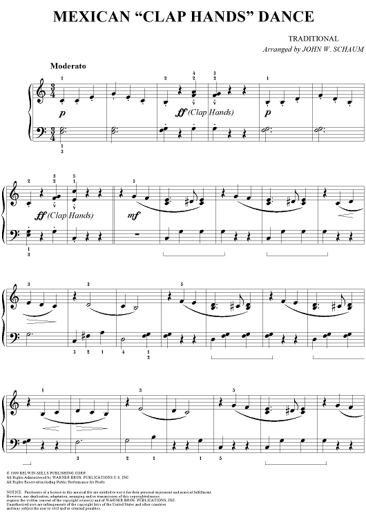 Digital Sheet Music for Mexican "Clap Hands" Dance by John W. Schaum, Traditional scored for Easy Piano; id:261446