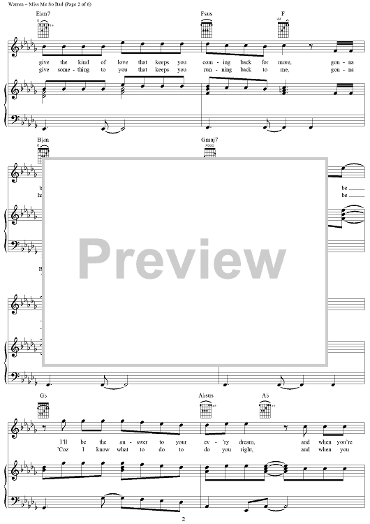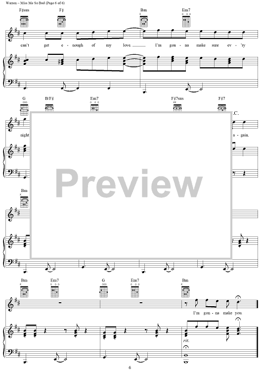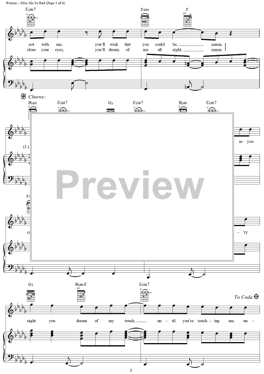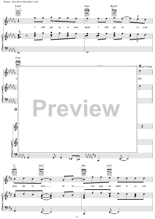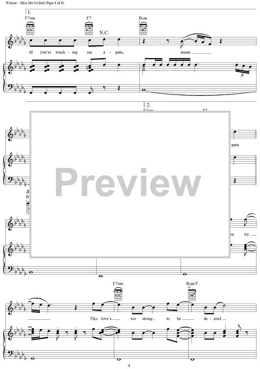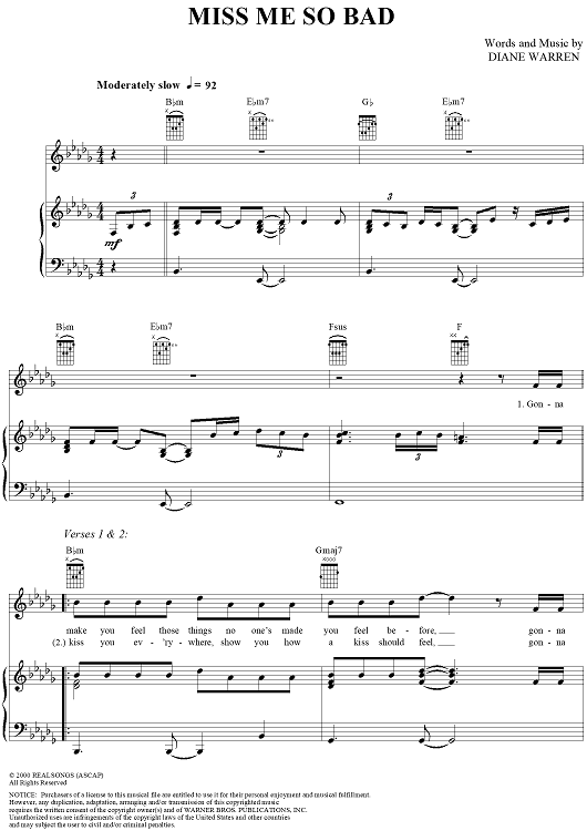 Digital Sheet Music for Miss Me So Bad by Diane Warren, Son by Four scored for Piano/Vocal/Chords; id:284238