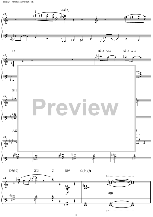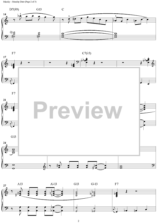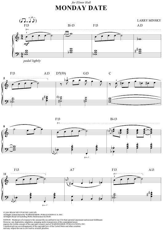Digital Sheet Music for Monday Date by Larry Minsky scored for Piano Solo; id:285878