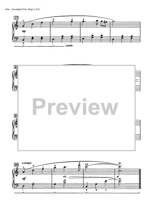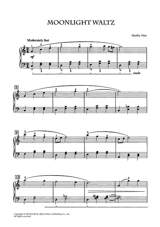 Digital Sheet Music for Moonlight Waltz by Martha Mier scored for Piano; id:462669