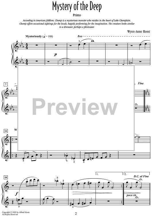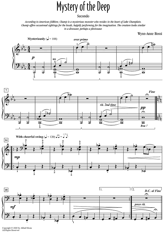 Digital Sheet Music for Mystery of the Deep by Wynn-Anne Rossi scored for 1 Piano, 4 Hands; id:469723