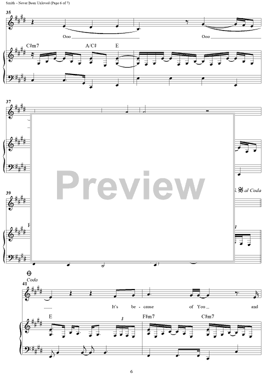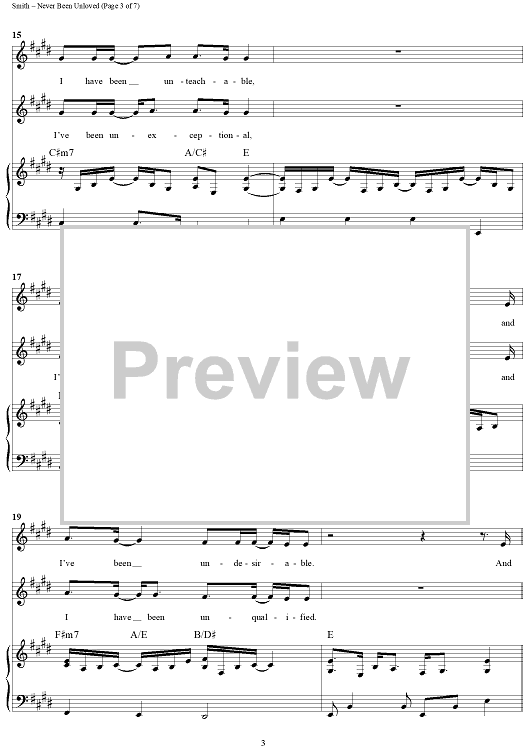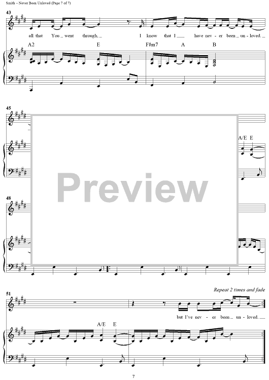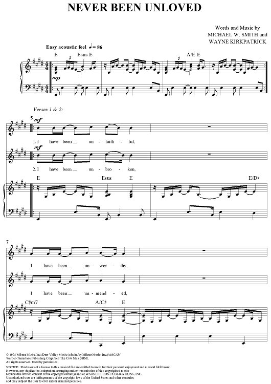 Digital Sheet Music for Never Been Unloved by Michael W. Smith, Wayne Kirkpatrick scored for Piano/Vocal/Chords; id:240665