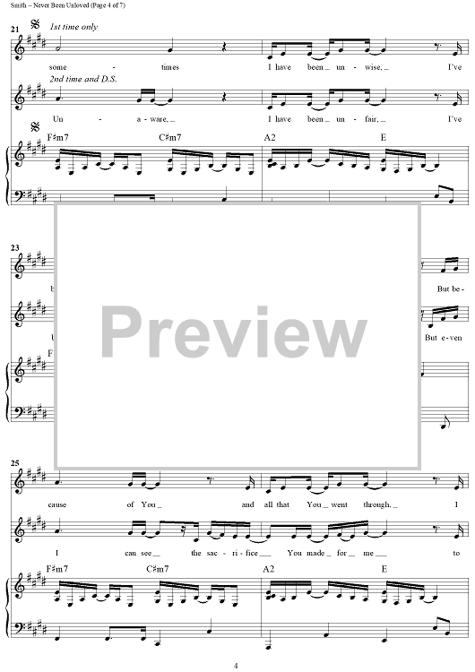 "Never Been Unloved" Sheet Music by Michael W. Smith
