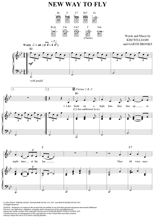 Digital Sheet Music for New Way to Fly by Garth Brooks, Kim Williams scored for Piano/Vocal/Chords; id:263812