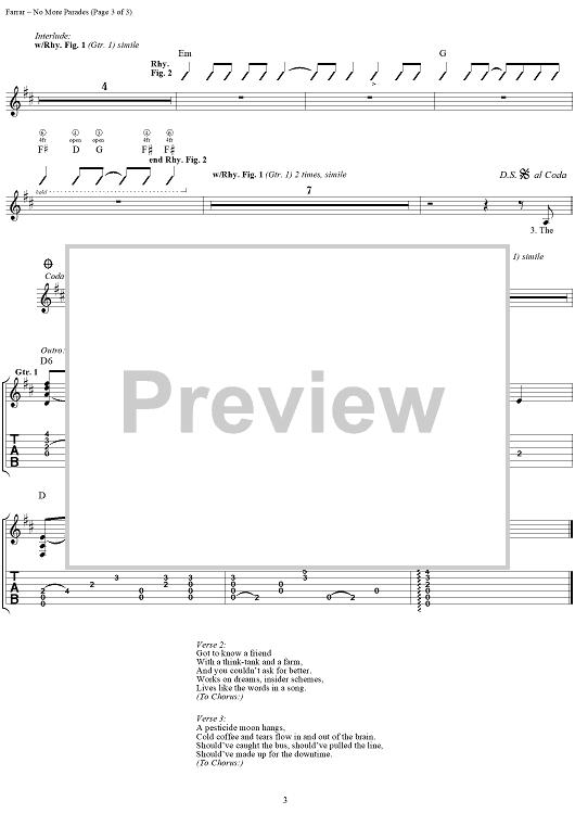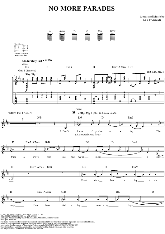 Digital Sheet Music for No More Parades by Jay Farrar, Son Volt scored for Guitar Tab/Vocal; id:114058