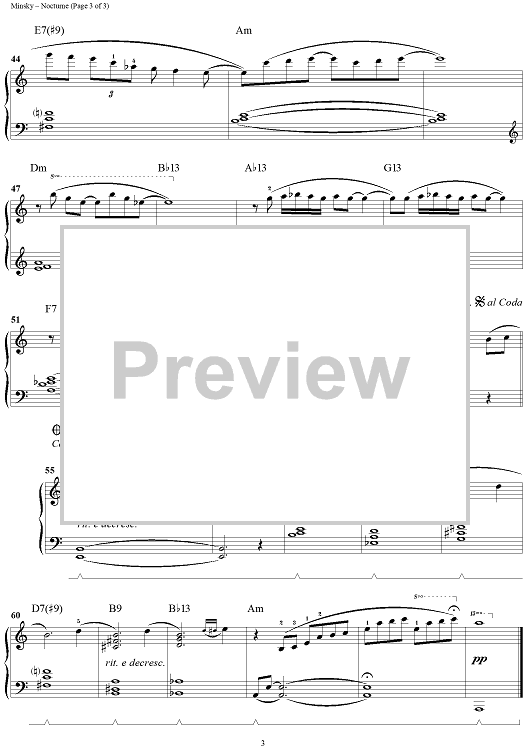 Digital Sheet Music for Nocturne by Larry Minsky scored for Piano Solo; id:285874