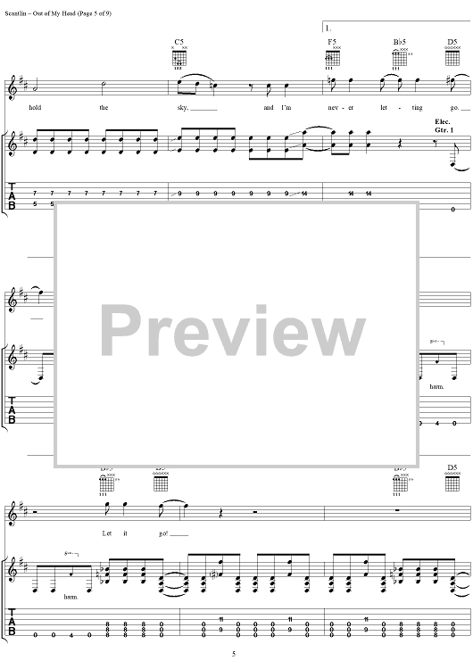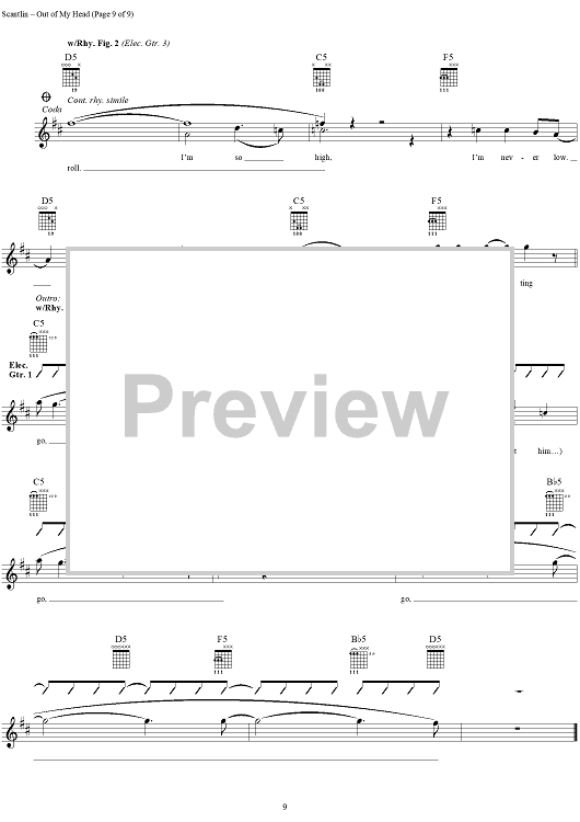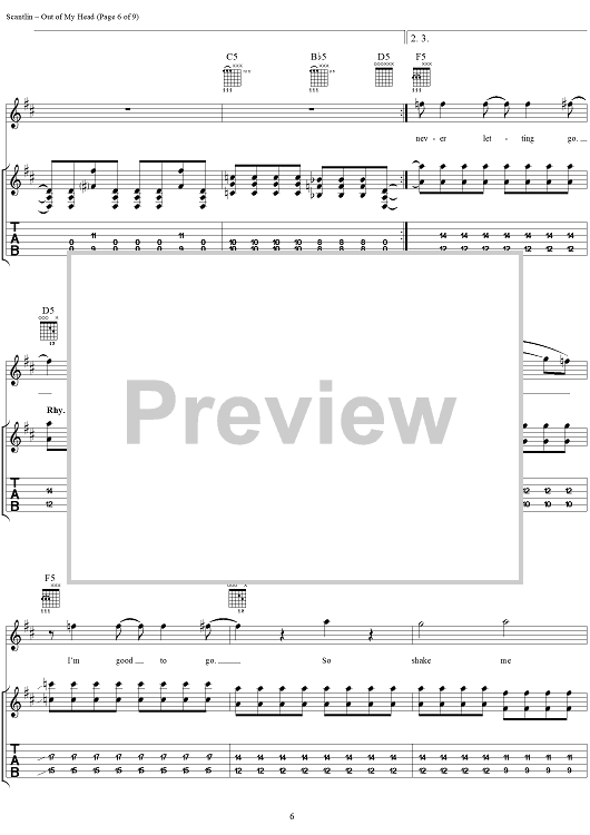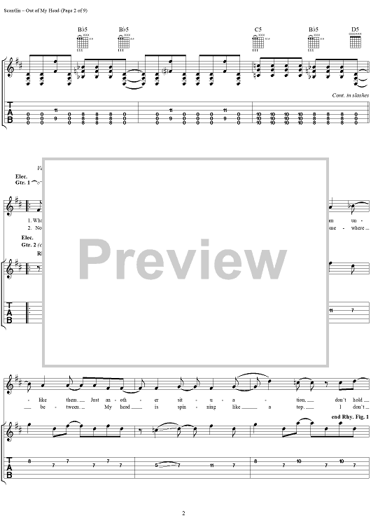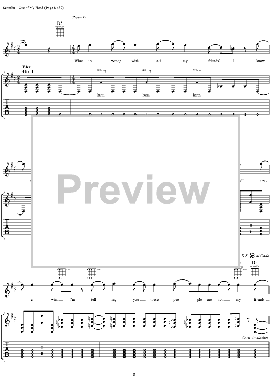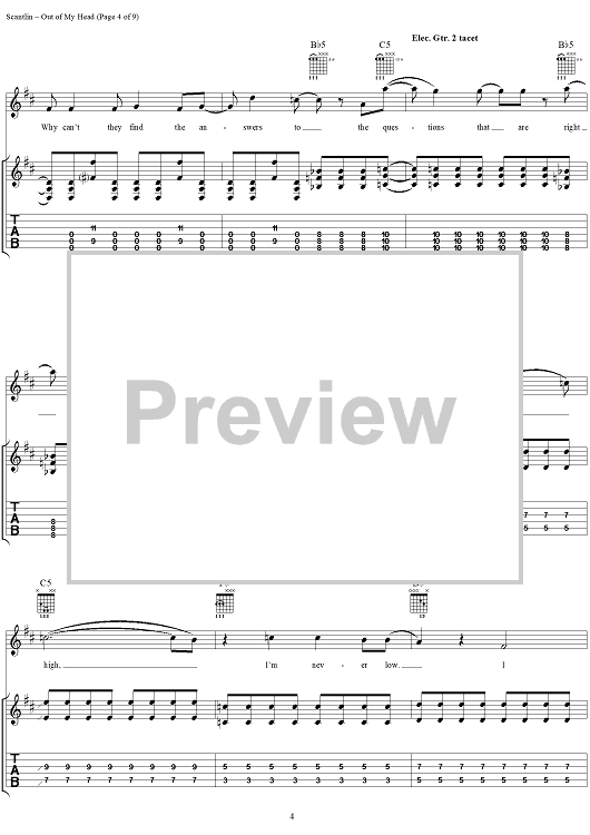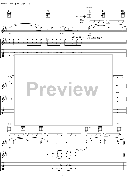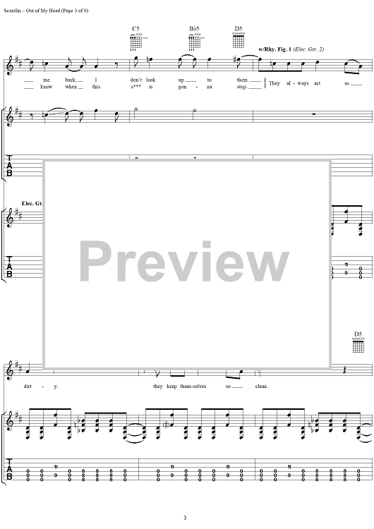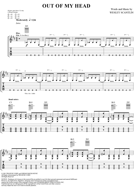 Digital Sheet Music for Out of My Head by Puddle Of Mudd, Wesley Scantlin scored for Guitar Tab/Vocal; id:288856