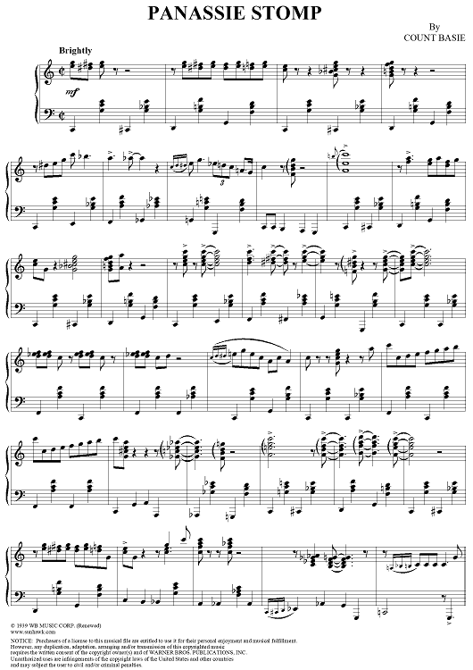 Digital Sheet Music for Panassie Stomp by Count Basie scored for Piano Solo; id:289155