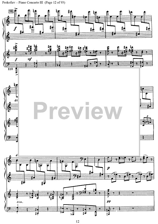 "Piano Concerto No. 3 in C Major, Opus 26" Sheet Music by Sergei Prokofiev