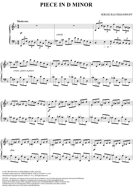 "Piece in D minor" Sheet Music by Sergei Rachmaninoff