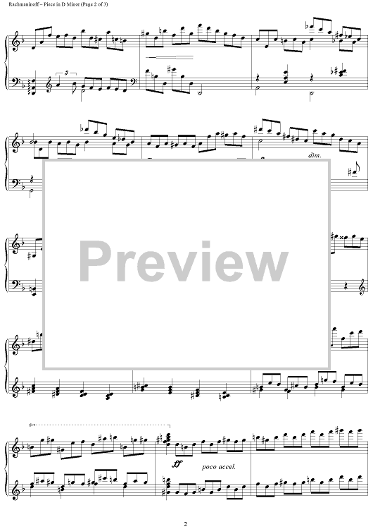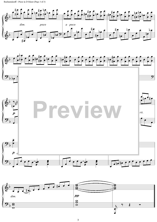 Digital Sheet Music for Piece in D minor by Sergei Rachmaninoff scored for Piano Solo; id:255170