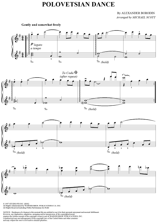 Digital Sheet Music for Polovetsian Dance by Alexander Borodin, Michael Scott scored for Piano Solo; id:274583