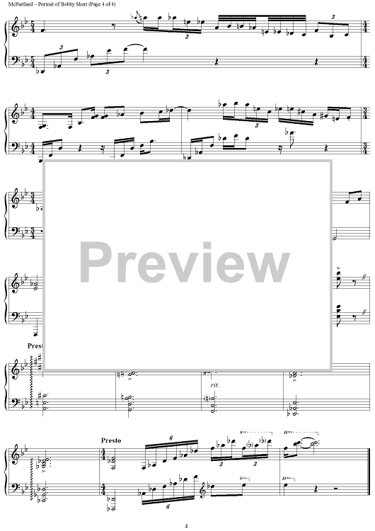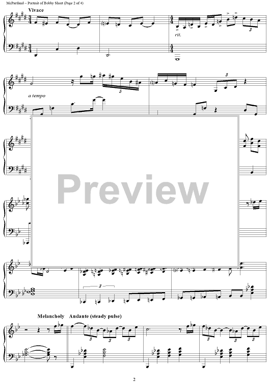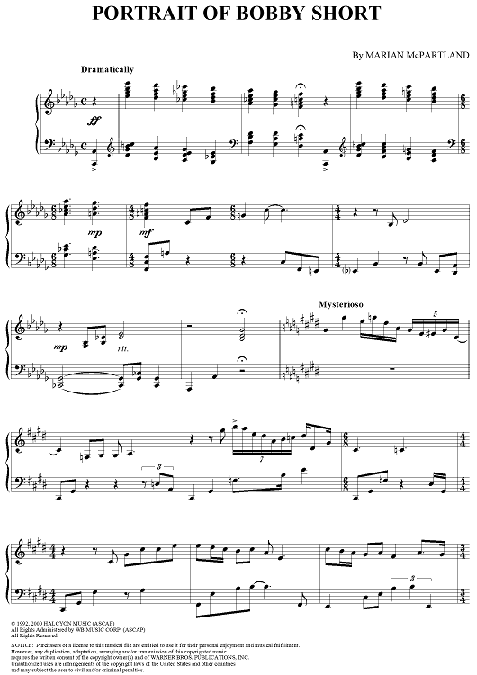 Digital Sheet Music for Portrait of Bobby Short by Marian McPartland scored for Piano Solo; id:285368