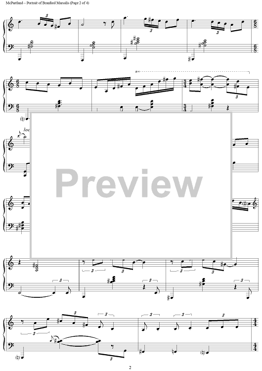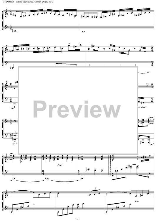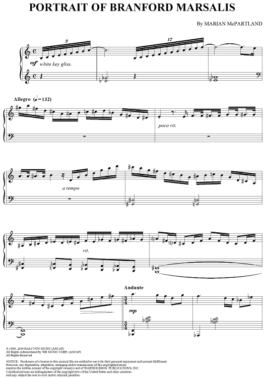 Digital Sheet Music for Portrait of Branford Marsalis by Marian McPartland scored for Piano Solo; id:285377