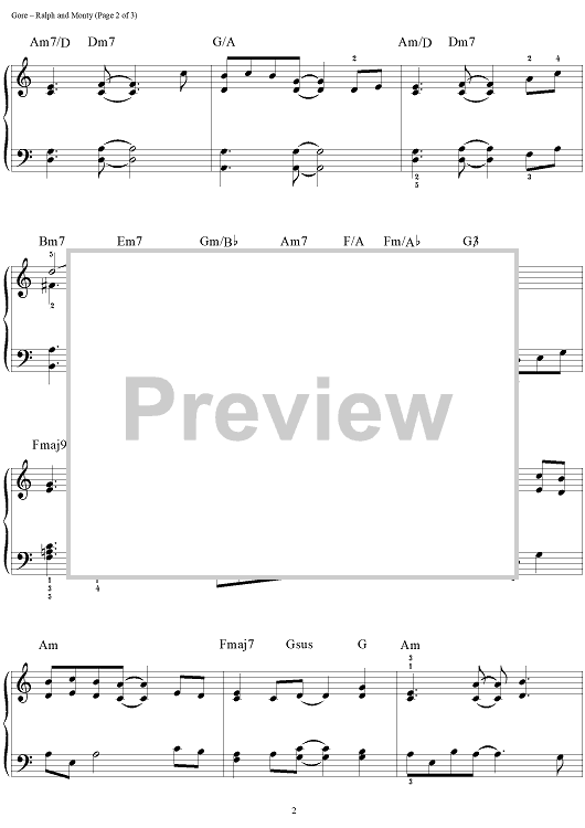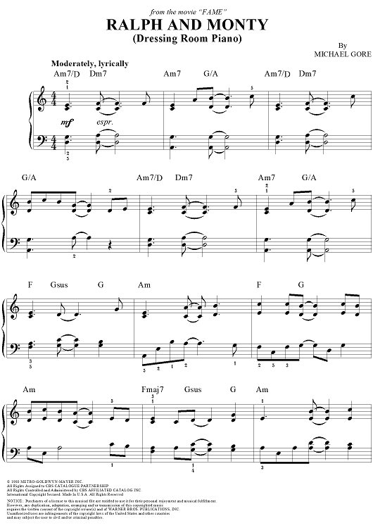 Digital Sheet Music for Ralph and Monty (Dressing Room Piano) by Michael Gore scored for Easy Piano; id:268931