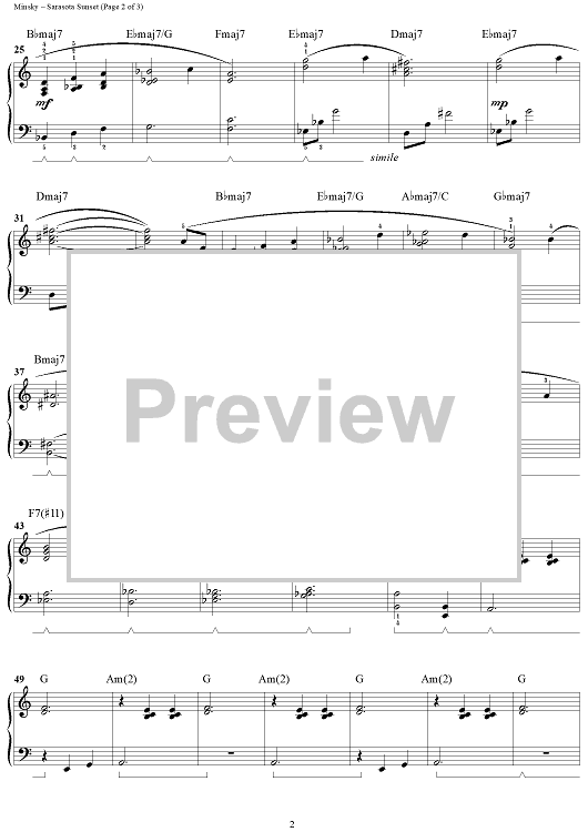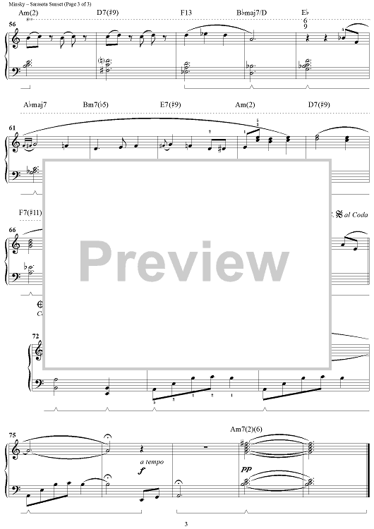 Digital Sheet Music for Sarasota Sunset by Larry Minsky scored for Piano Solo; id:287234