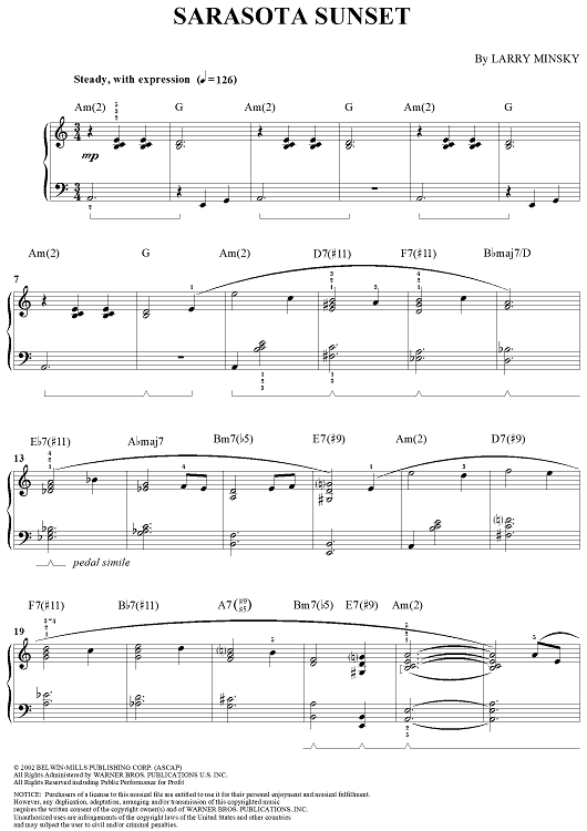 "Sarasota Sunset" Sheet Music by Larry Minsky