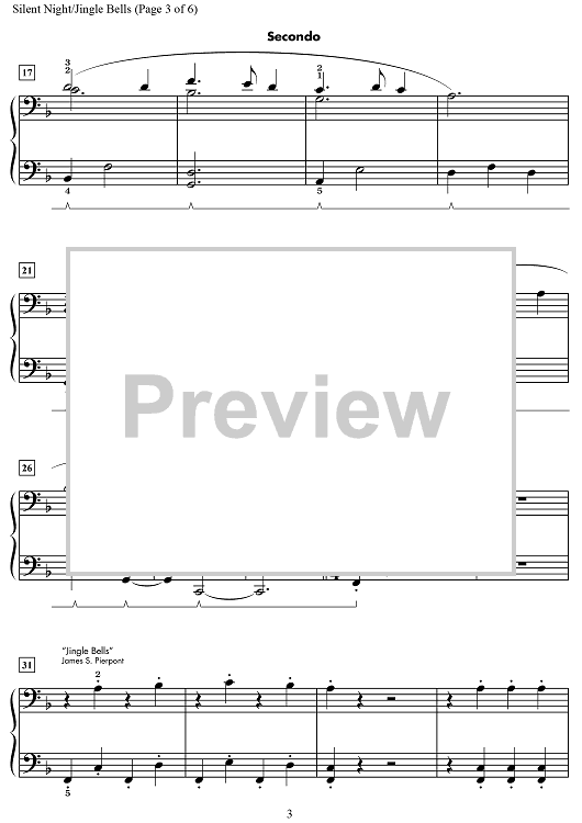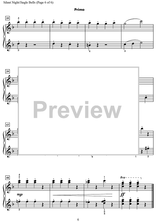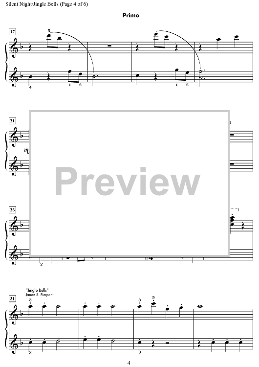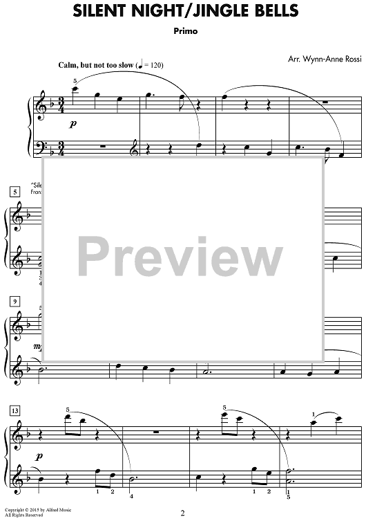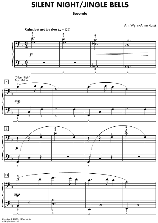 Digital Sheet Music for Silent Night / Jingle Bells by Wynn-Anne Rossi scored for 1 Piano, 4 Hands; id:469709
