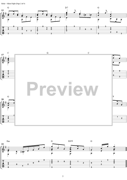 "Silent Night" Sheet Music by Franz Xaver Gruber